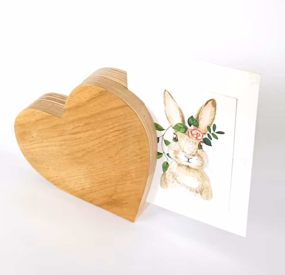 Ekspozytor do zdjęć w kształcie serca.